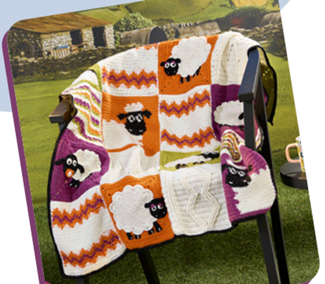 New crochet and knit along from West Yorkshire Spinners coming in October 2025. These yarn bundles will give you all the yarn you need to make a crochet or knitted blanket featuring the ever popular Shaun the Sheep, and his friends Shirley and Timmy. This beautiful blanket is designed by Chloe Elizabeth Birch and measures approximately 80cm x 100cm. 1st pattern released on the 1st October by West Yorkshire Spinners. IN collaboration with Aardman and The Campaign for Wool.